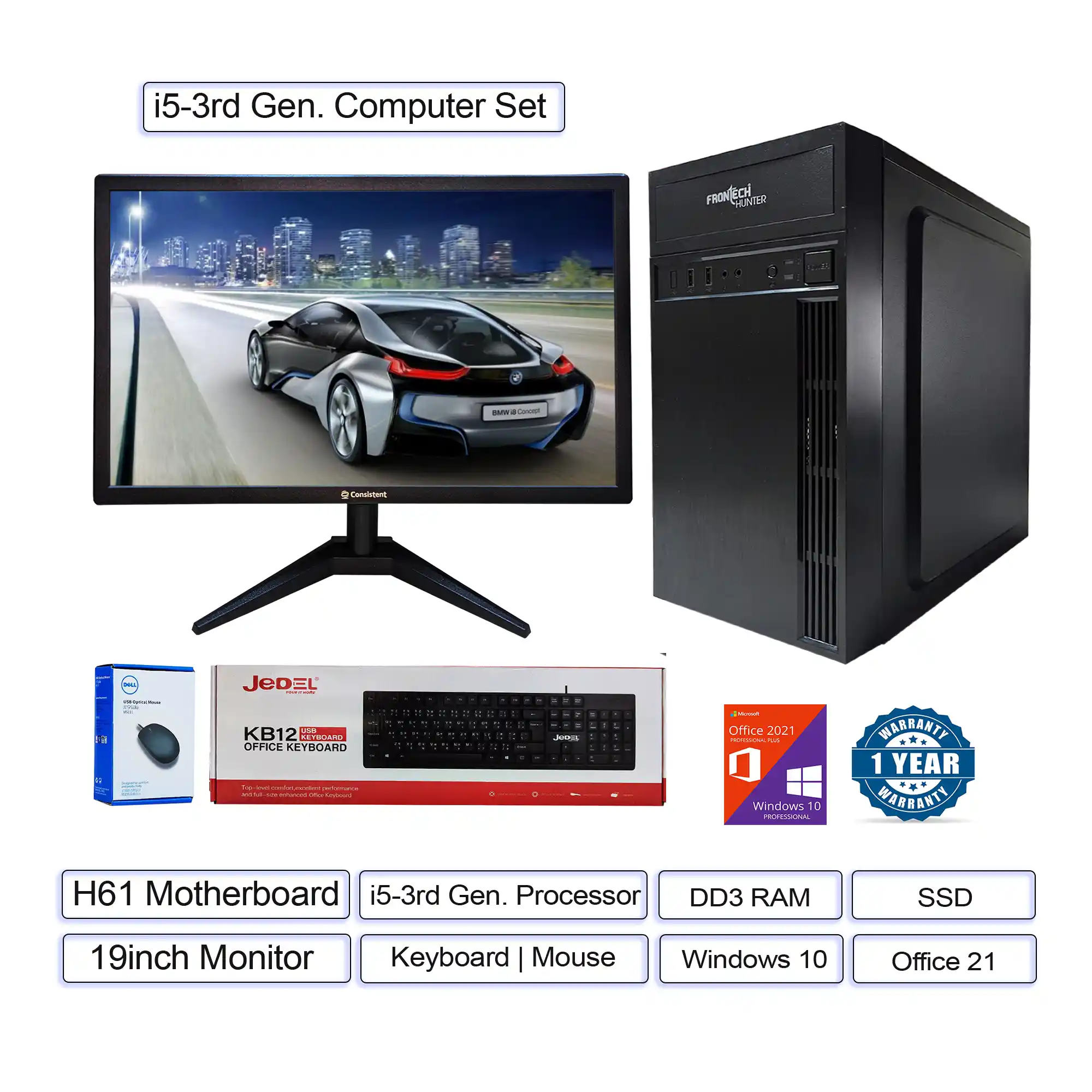 Upgrade your workspace with this Intel Core i5 3rd Generation Desktop Computer Set, designed for fast, reliable, and efficient everyday computing. This complete package includes everything you need—CPU, monitor, keyboard, and mouse—making it perfect for plug-and-play use.